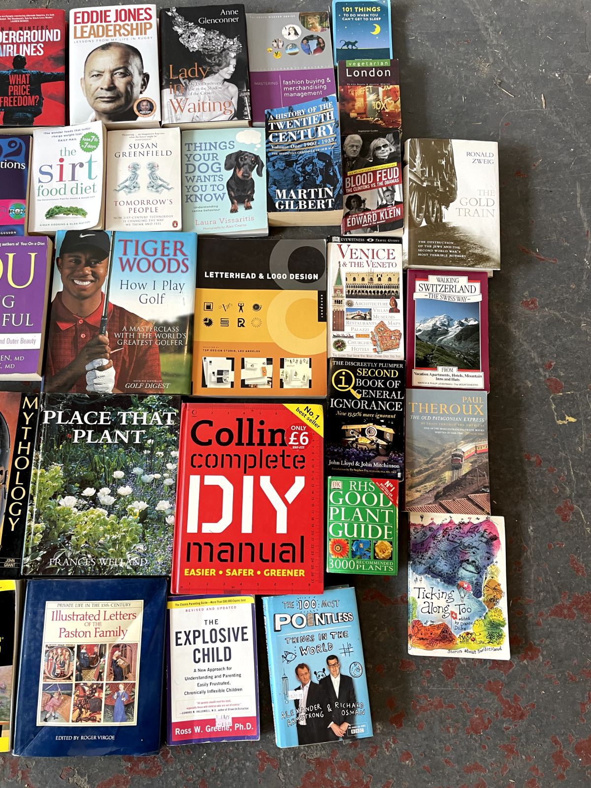 You'll receive 20-40 books per box of randomly selected titles. We try to ensure no repeat titles in the same box (but you'll likely get some repeats if ordering larger quantities). In this lot of non-fiction titles, you'll typically find books on history, gardening, self-help, esoteric, religion, science, psychology, academic, cooking, music, biography, cars, fishing, trains, beauty, trivia, geography, travel and much more.